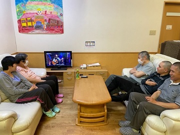 親しい入居者様どうしが集って、リビングのテレビを囲んで