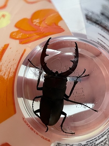 庭園で捕まえたノコギリクワガタを見せてくれましたヨ^^