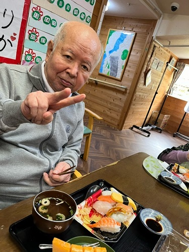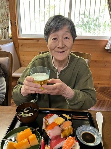 今月のお楽しみ会は握り寿司と松茸のお吸い物、メロンでしたemoji