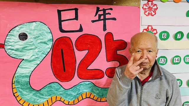 2025年の壁飾りと一緒に記念撮影しましたemojiemoji