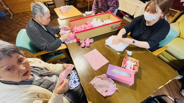 お花見会に向けて皆様と一緒に制作していた飾りが完成しましたemojiemoji