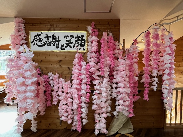 お花見会に向けて皆様と一緒に制作していた飾りが完成しましたemojiemoji