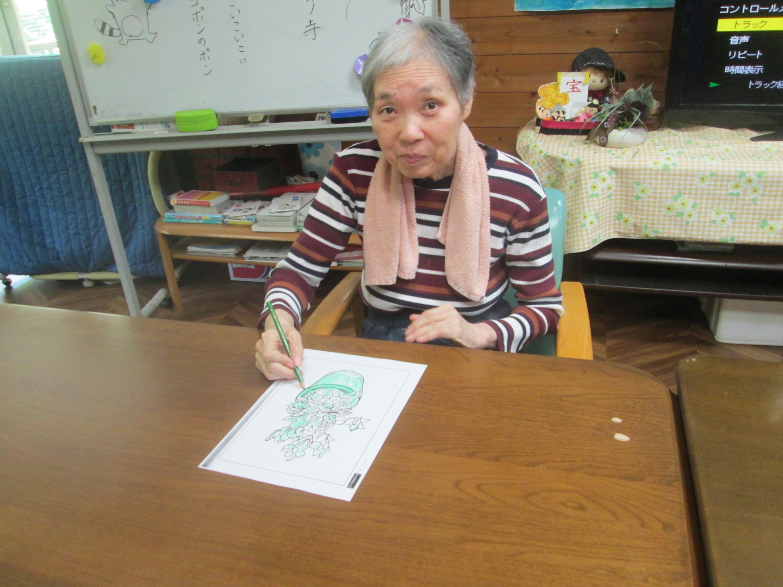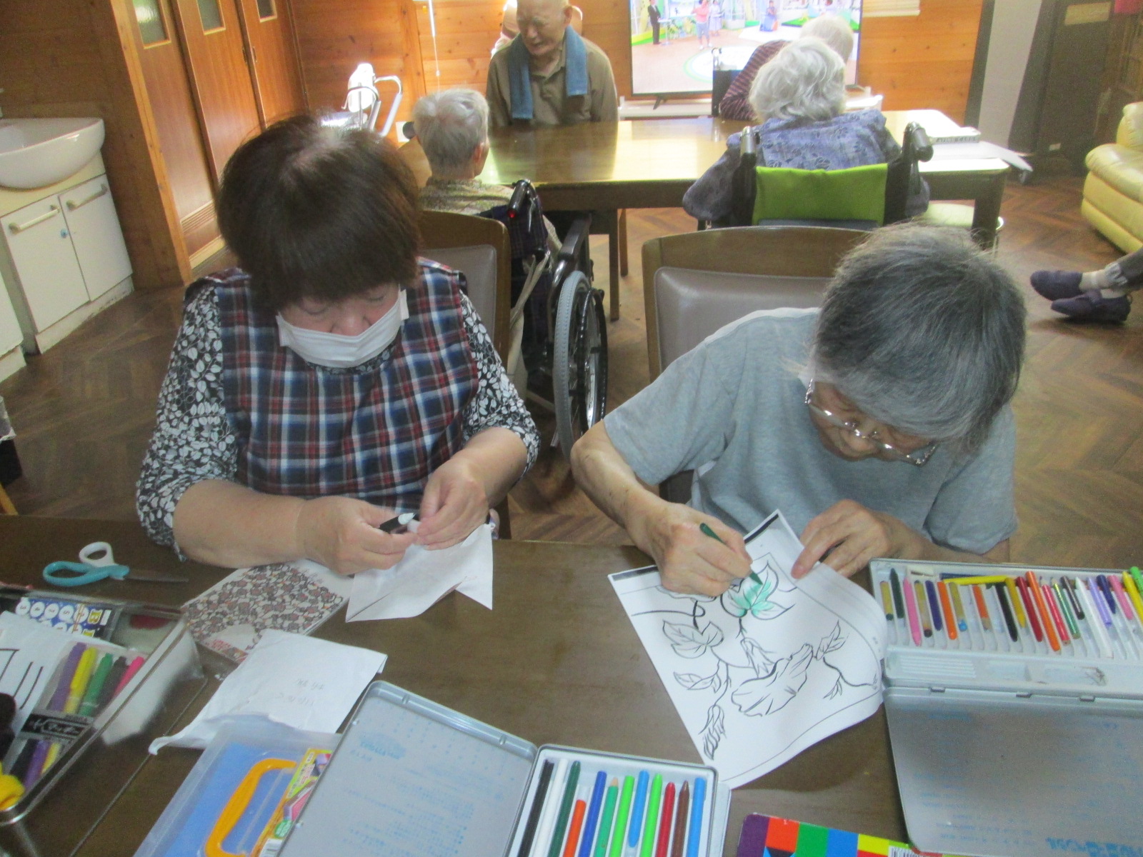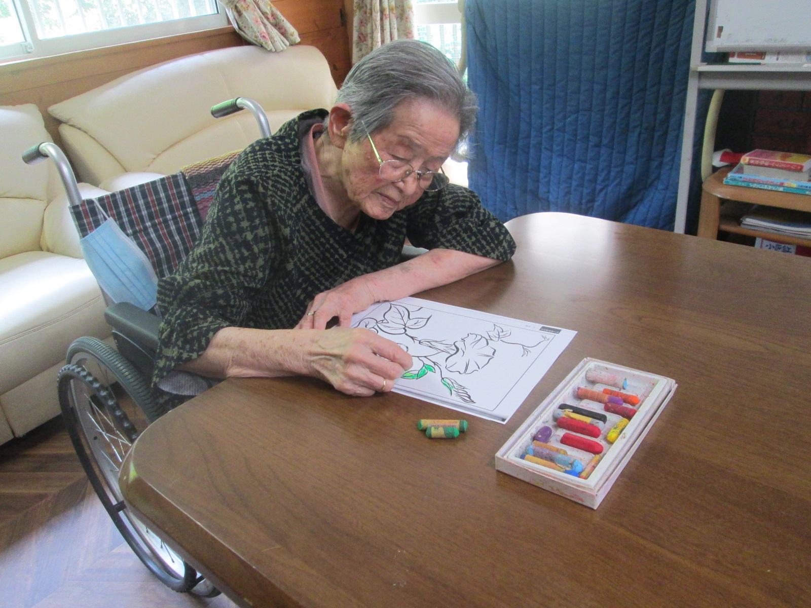 塗り絵は、脳の活性化、手指のリハビリにつながるレクリエーションです。