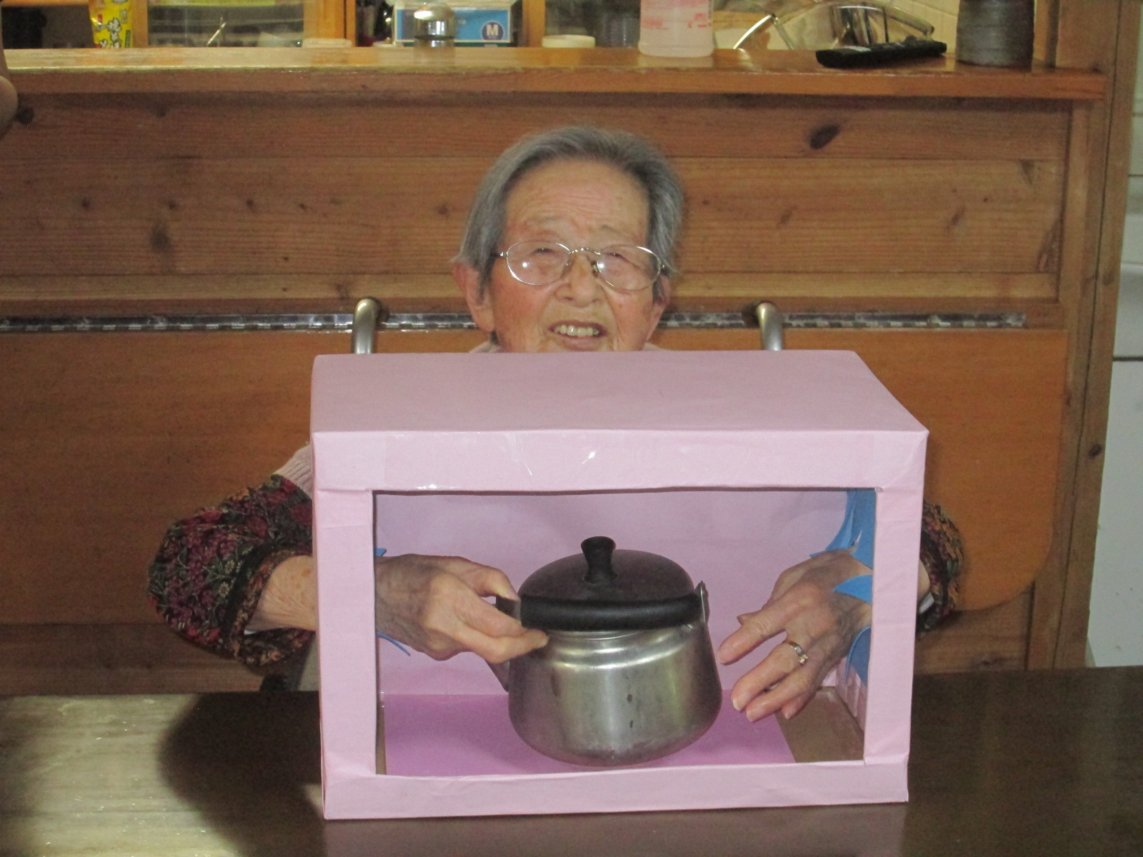 箱の中身は何かな?手の感触だけで当てます。観客の皆さんには見えています。emoji