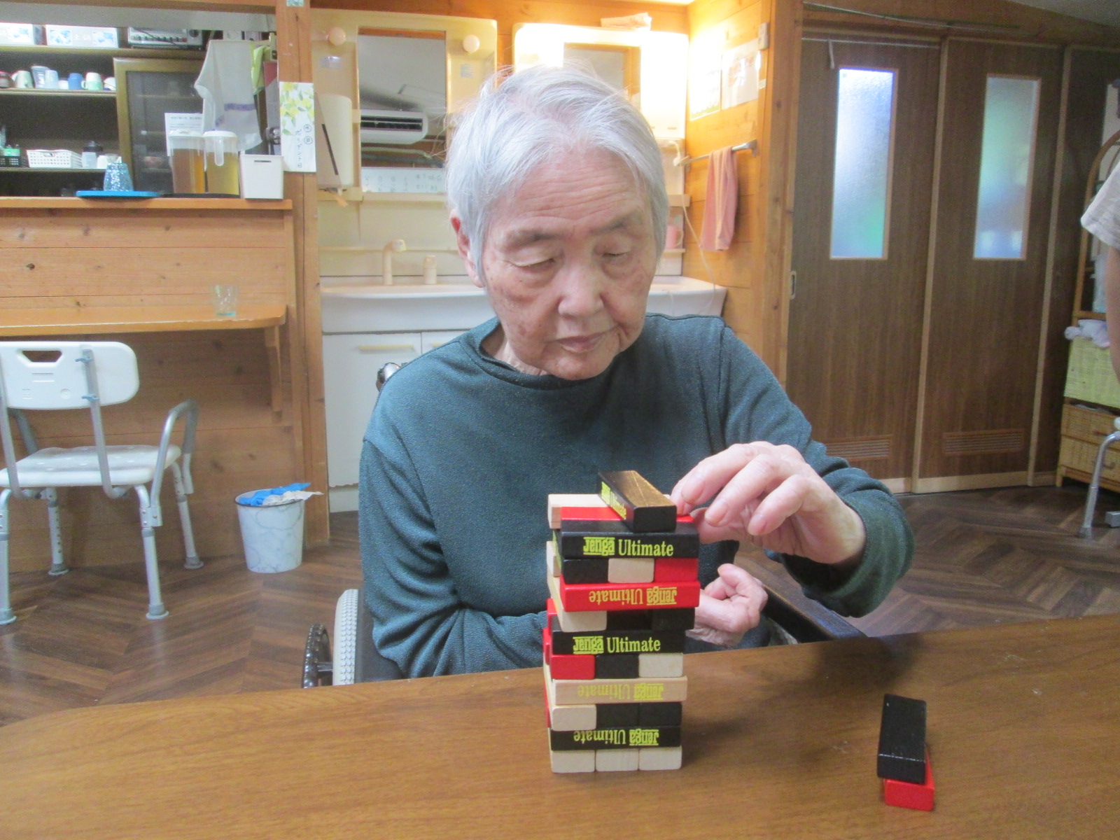 積み木を崩さず1本ずつ抜いていきます。ハラハラドキドキの瞬間です。emoji