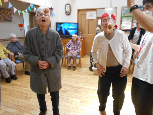 運動会を開催し、パン食い競争と玉転がしをして大変盛り上がりました!
