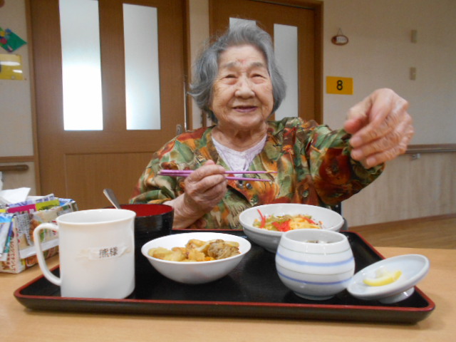 食事会ということで、利用者様に職員手作りのちらし寿司、天ぷら、茶碗蒸し、すまし汁を召し上がっていただきましたemoji