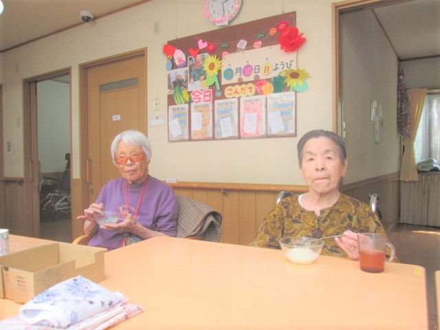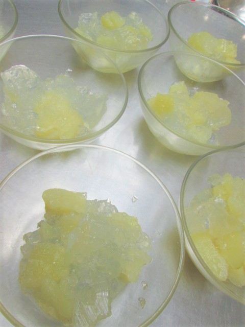 3時のおやつには職員お手製の桃ゼリーをemoji