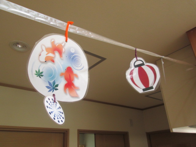 祭り気分を味わっていただくためリビングに飾り付けをしたりましたemojiemoji