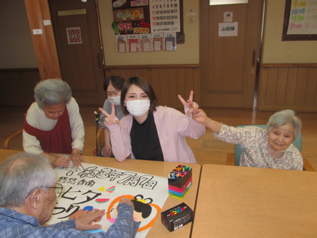 七夕のレクリエーションに向けて皆様と準備をしましたemojiemoji