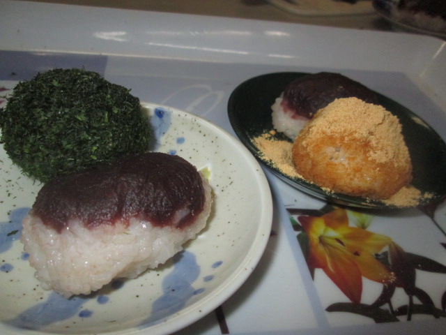 あんこ、きなこ、青のりの3種類が出来ましたemoji