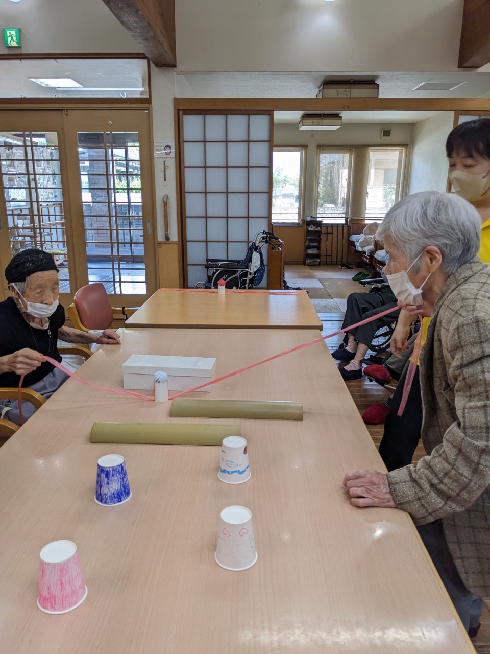 紐はずしゲームも一緒に引っ張るゲームもなかなか難しく、皆さん考えながらされていましたemoji