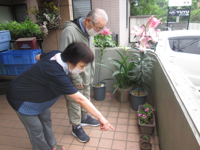 利用者様と一緒に朝顔の植え付けをしましたemoji