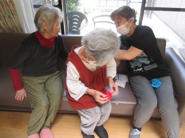 皆様と一緒に「内職やemoji」と言い、せっせとお花作りをしたり