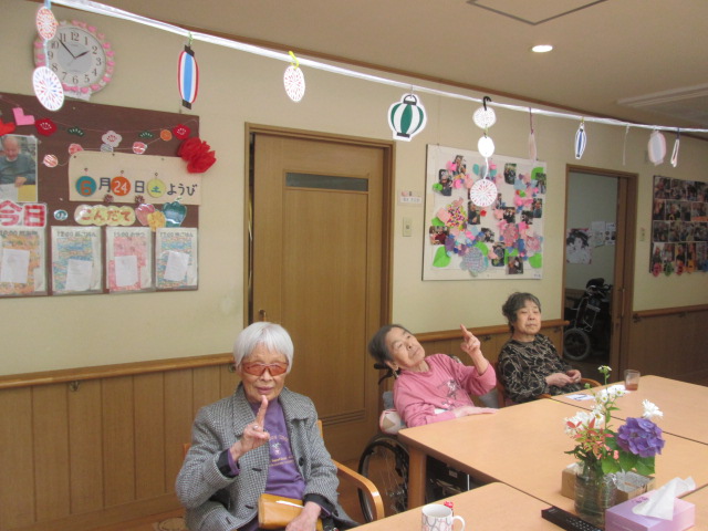 祭り気分を味わっていただくためリビングに飾り付けをしたりましたemojiemoji