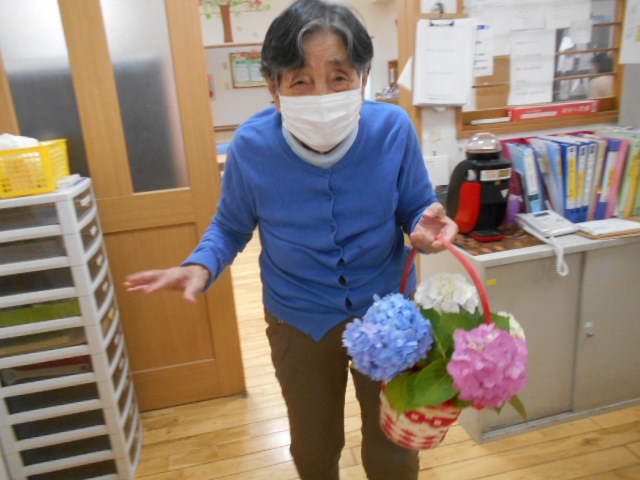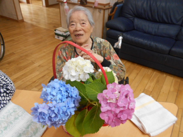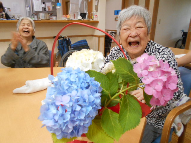 酷暑の季節を迎える前に、入居者の皆さんも職員も、アジサイを