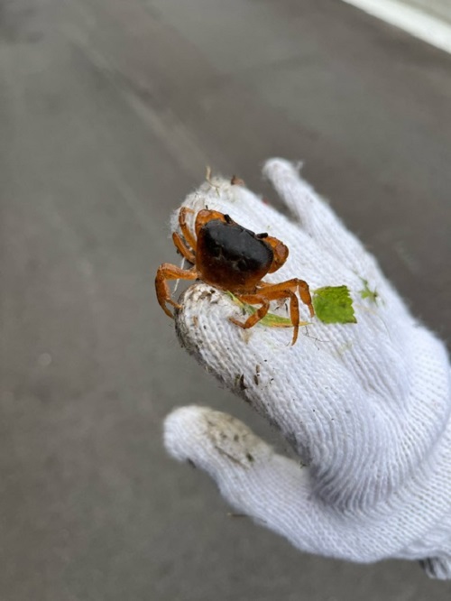 「小さい蟹がおるで」と少し観察して川に帰ってもらいましたemojiemoji
