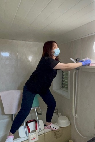 掃除していると「ありがとうね」「危ないけん気を付けまいよ」