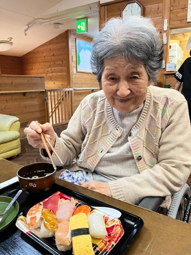 今月のお楽しみ会は握り寿司と松茸のお吸い物、メロンでしたemoji