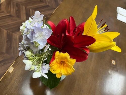 お散歩へ出かけて近所の方とお話したりお花を見せてもらいましたemojiemoji