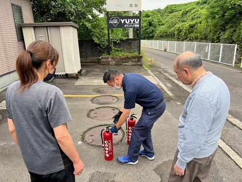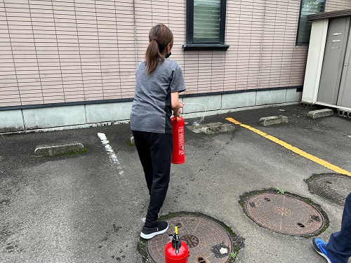 実際に火災報知器や消火器を用いて訓練を行いましたemoji