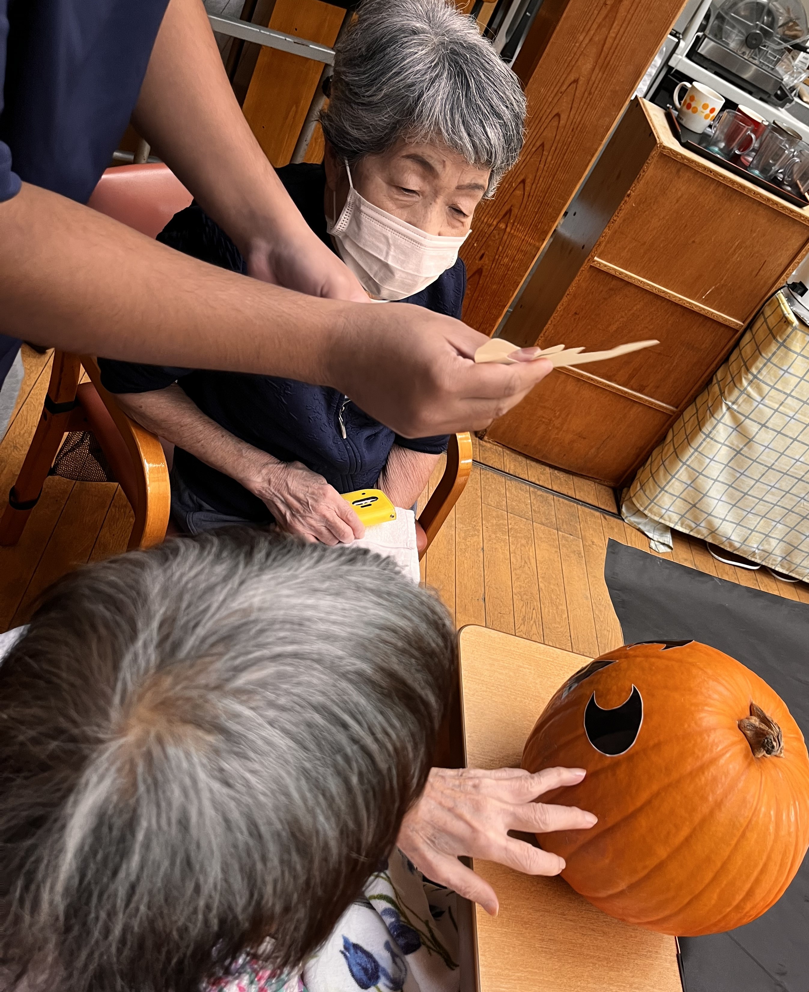 ハロウィンらしくシールで顔をつくりましたemojiemoji